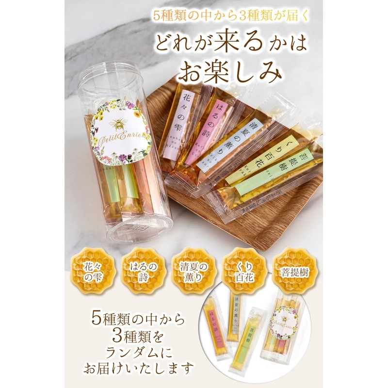 Japanese Honey Variety Set of 3 Sticks, Non-Heating, Additive-free, Small Packing, Throat Care, Gift, Souvenir