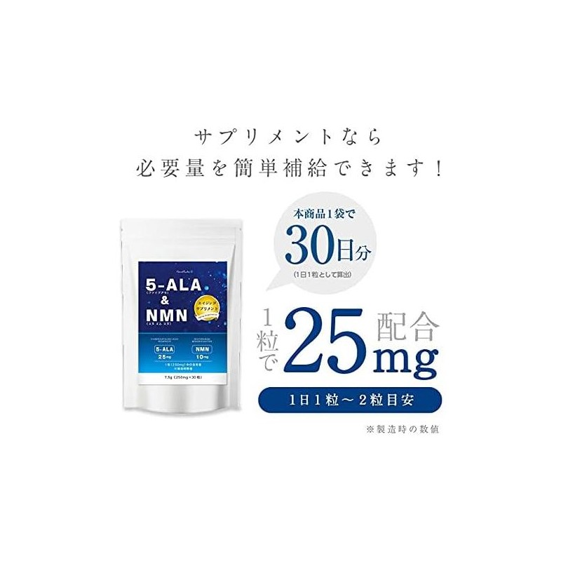 [Japanese NMN] 25 mg "5-ALA NMN 30 grains" per grain of domestic 5ALA cost-effectiveness maximum 5ALA is used for research 5-ALA and NMN into one grain...