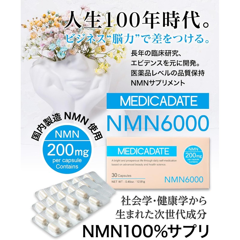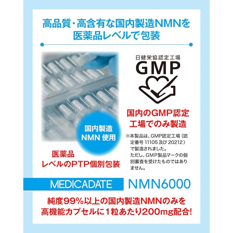 [Japanese NMN] MMEDICADATEカHighly blended NMN supplement 6000 mg (200 mg per tablet) Made in Japan High purity 99% or more PTP individually packed for 30 days Domestic GMP