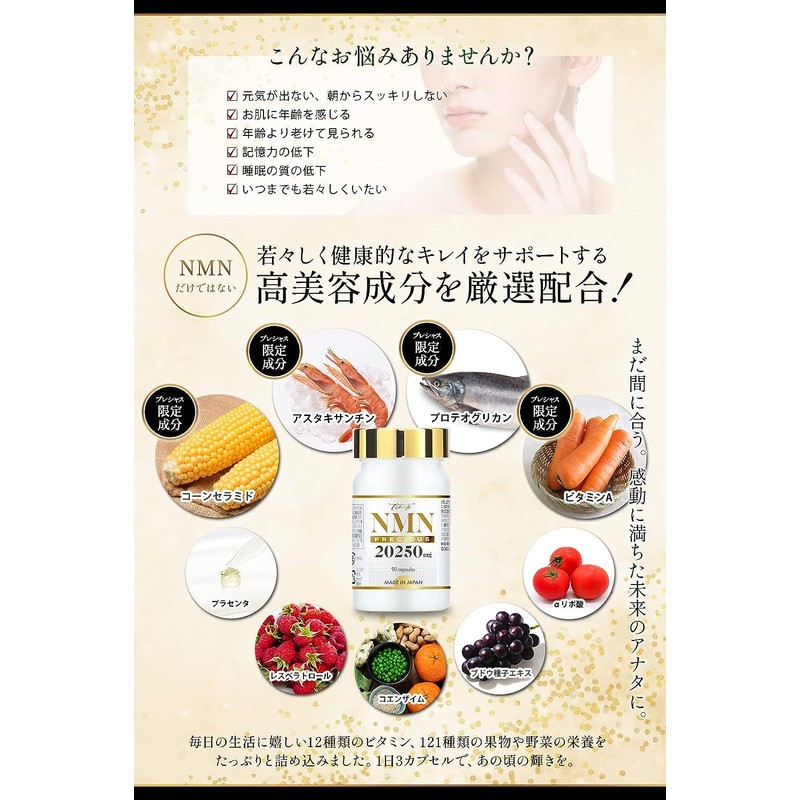[Japanese NMN] NMN 20,250mg High purity 100% Japanese Placenta resveratrol coenzyme Astaxanthin Proteoglycan α-Lipoic Acid Domestic GMP Certified Factory for 30 days 90 Capsules