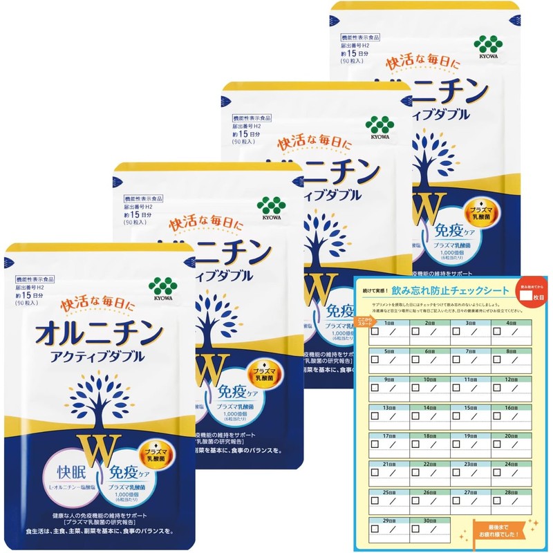 [Japanese nutritional supplements] Kyowa Fermented Bioornitin Active double 250mg x 90 tablets x 4 bags (approx. 60 days worth) Functional labelling foods (supplement/sleep