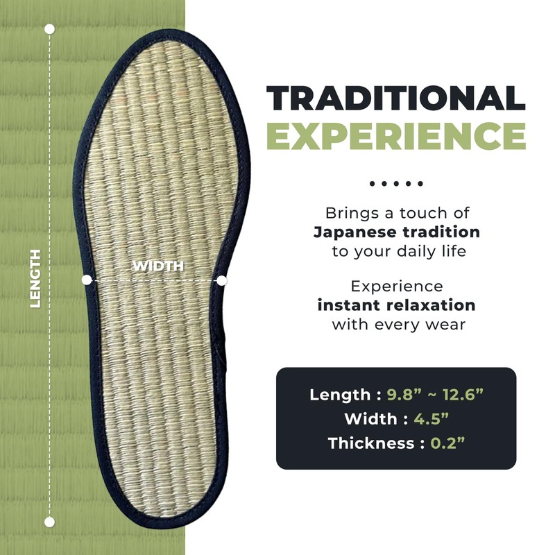 - [Traditional Tatami Comfort]: Made from high-quality Japanese rush, these insoles provide a soft, cushiony feel, like stepping on a Tatami mat.
