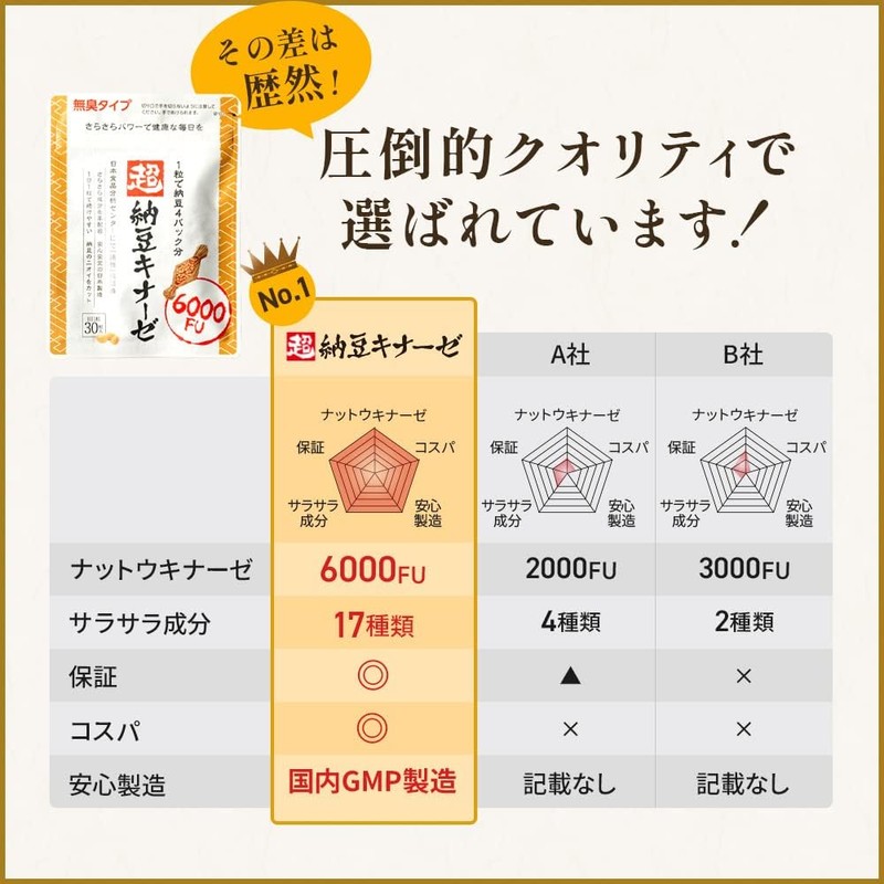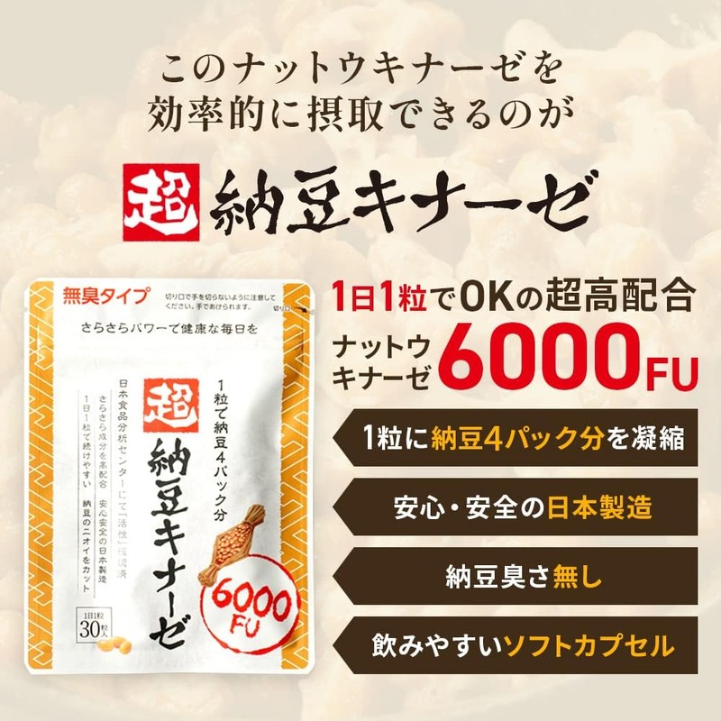 [Japanese Sports Supplements] Amazon Exclusive Brand Super Natto Kinase 6000FU Natto Kinase Natto Kinase DHA EPA Sardine Peptide Smooth Lycopene GABA Onion Peel Extract Elastin