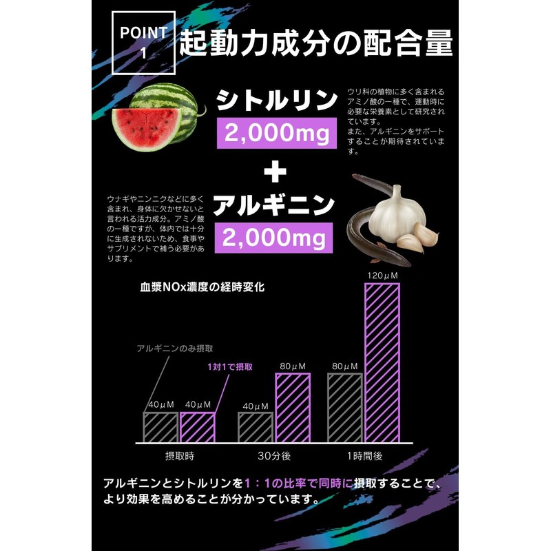 [Product Features] Contains 2,000mg each of ``citrulline'' and ``arginine.'' Imidazole dipeptide, which is found in migratory birds and migratory fish that migrate more than 80,000 km per year, Amino Seal, a high-quality protein extract, Bioperine, which has the effect of supporting other ingredients taken at the same time, and other ingredients that have been used since ancient times. Contains generous amounts of nourishing ingredients.