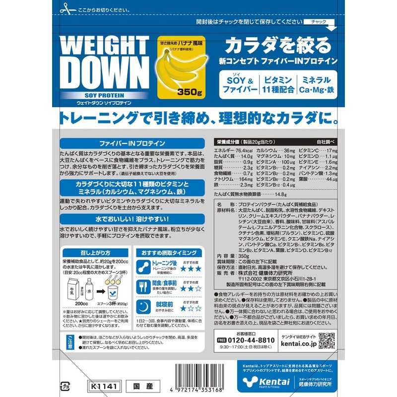 [Japanese Sports Supplements] Kentai WEIGHT DOWN SOY Protein Cocoa Flavor 880g 350g (x 1)