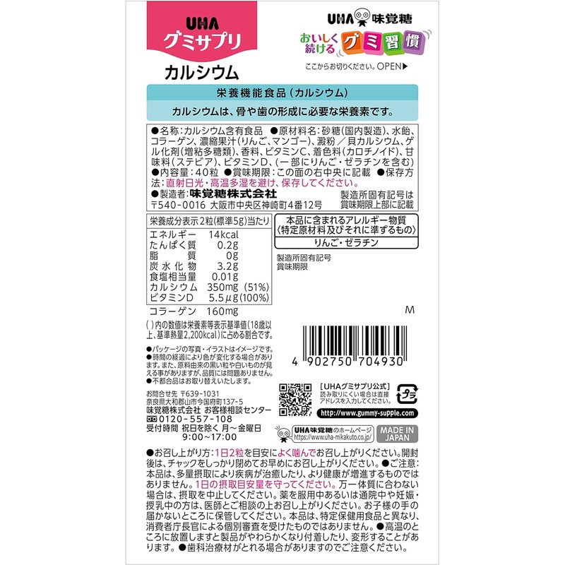 [Japanese Sports Supplements] UHA Mikakuto Gummy Supplement Calcium 20 days supply (40 tablets) Mango Flavor 40 capsules (x 1)