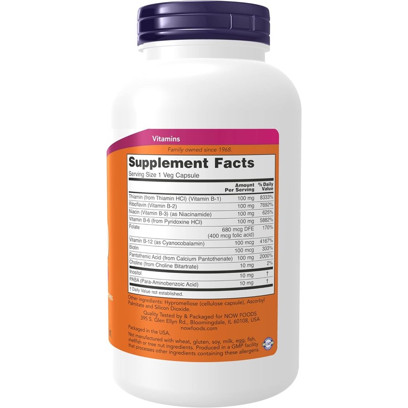 Ingredient contents (in one capsule) Thiamine 100 mg riboflavin 100 mg niacin 100 mg vitamin B6100 mg folate 400 mcg vitamin B12100 mcg biotin 100 mcg pantothenic acid 100 mg PABA 10 mg choline 100mg inositol 100mg