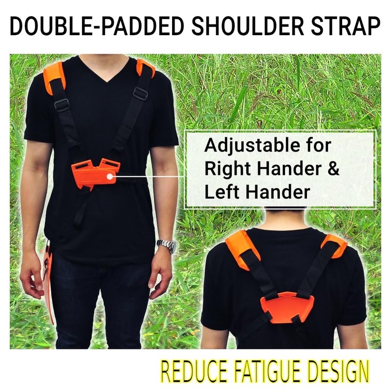 - Save 30% of your energy: Double shoulder weed eater strap design can greatly distribute your heavy trimmers weight over your shoulders and back and it can help to work with heacy mower