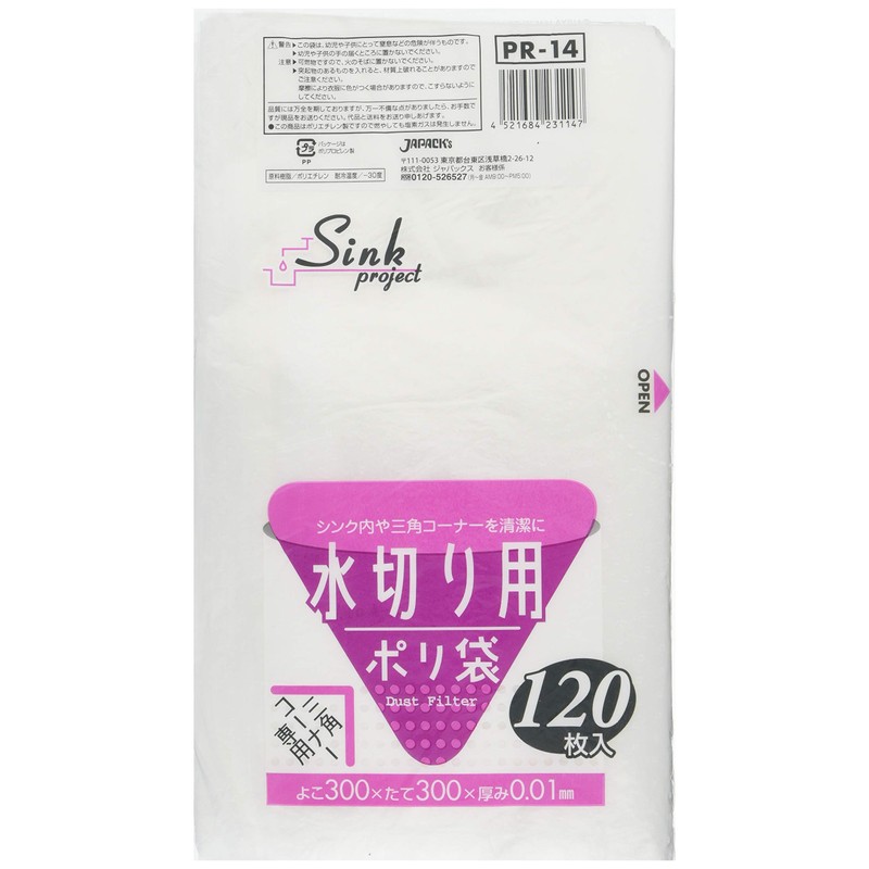Japucks PR14 Plastic Storage Bag, Economical Type, For Draining, Width 11.8 x Height 11.8 inches (300 x 300 mm), Translucent