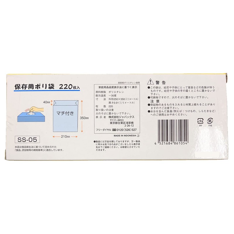 Japucks SS-05 Plastic Storage Bags, Box Type, 220 Sheets