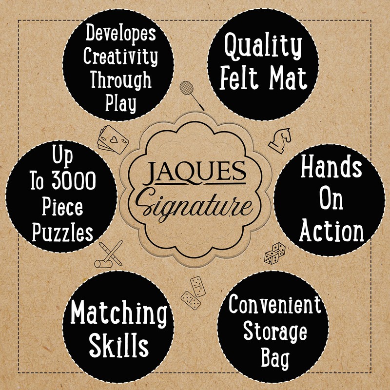 • Roll Up Puzzle Mat | Ultimate gift jigsaw puzzle board portable foldable. Jaques roll up puzzle mat makes a wonderful gift for anyone who loves jigsaws. Each puzzle roll mat comes in a beautiful Jaques gift box with hand tied ribbon. Over 225 years of excellent customer service from the oldest games and toy maker in the world
