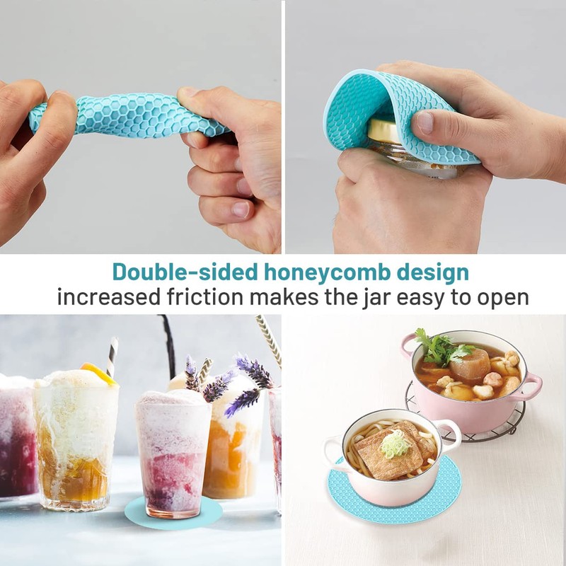 - 【Oversized Rubber Jar Gripper】The latest square soft silicone gripper pad has the functions of not easy to deform, easy to clean, non-slip, waterproof, heat insulation, etc. It is an indispensable multi-functional kitchen tool in life. It can also be used as a heat pad, silicone tripod or placemat etc.