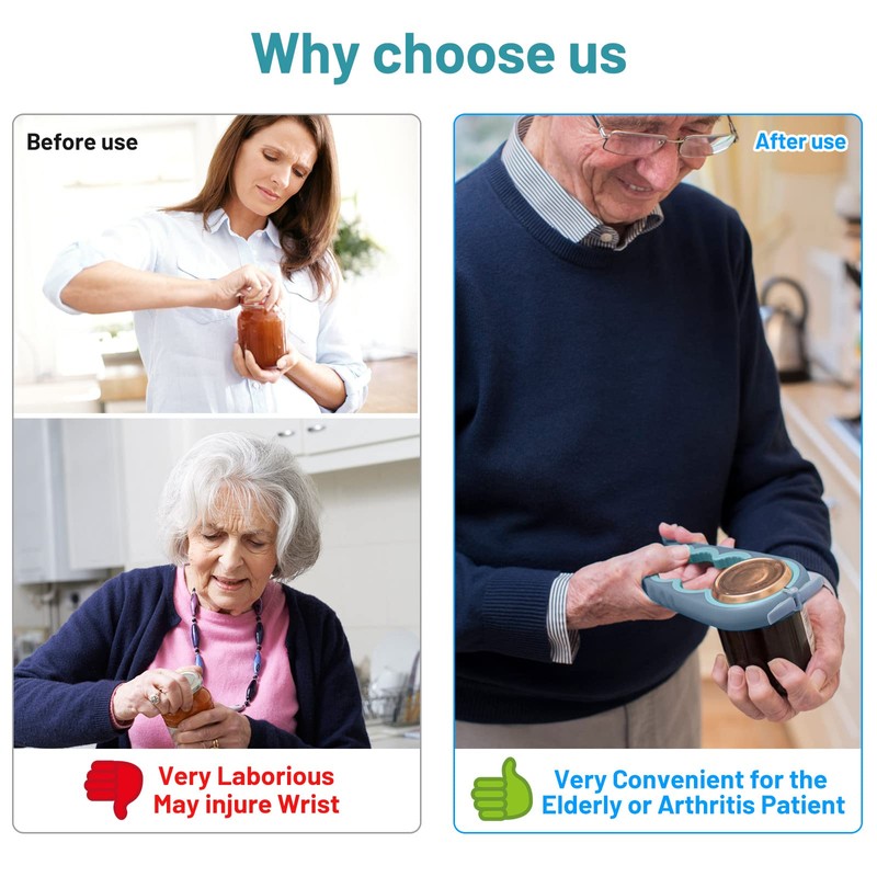 - 【Perfect Gift for Your Loved Ones】This jar and bottle opener set is the best gift for seniors, arthritis sufferers or anyone who is physically weak for mom, dad, grandma, grandpa or friends the perfect gift.