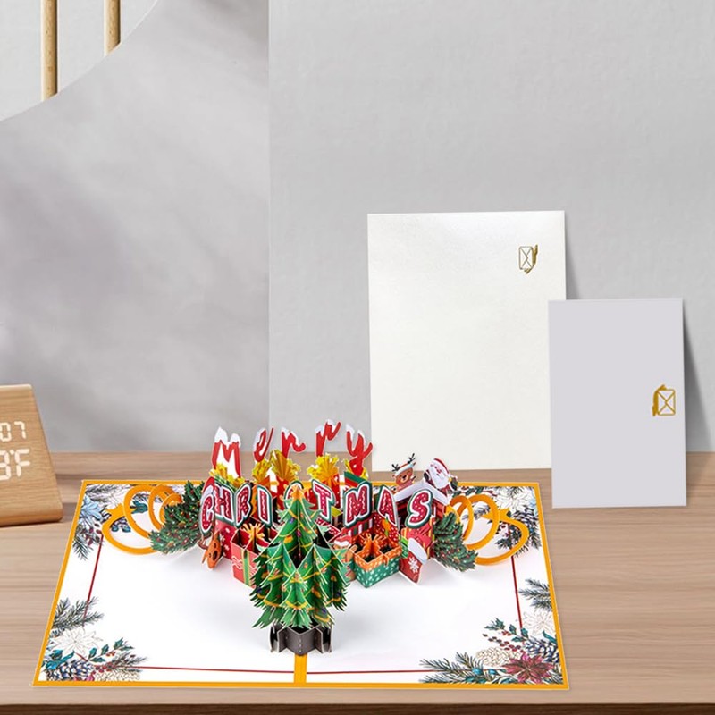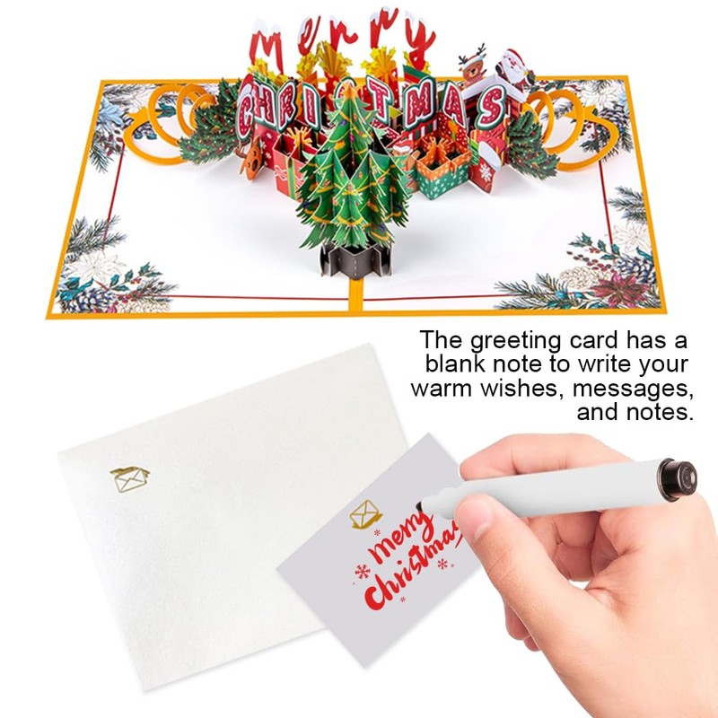 - Best wishes: the greeting card has a blank note to write your warm wishes, messages and notes. The 3D pop-up cards filled with cute Christmas elements will help you translate these adorable sentiments.This is a very touched gift for someone important to you. Pop up card is perfect for the holiday season and unique xmas cards throughout the year to bring a bit of holiday cheer regardless of the season.