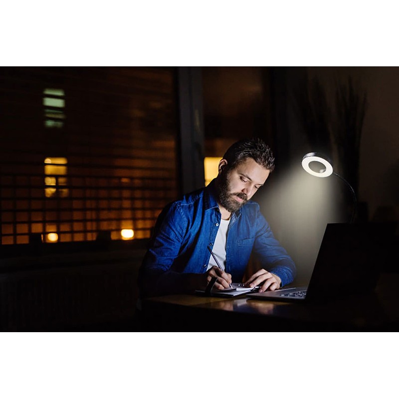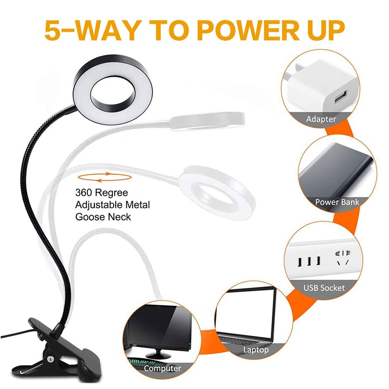 - Flexible USB Lamp with Sturdy Clamp: The 360flexible gooseneck allows you to easily adjust and direct the light to where you want it. The sturdy metal clip opens to 2.36 inches and is also very portable for fixing on desk, table, dressing cupboard, headboard, computer, and other locations. The Ring design is great for better heat dissipation and enjoy a larger luminous area.