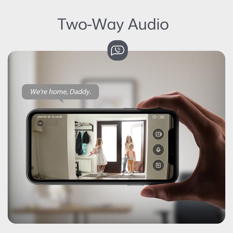 • INTERACTIVE TWO-WAY AUDIO: Communicate from anywhere with built-in two-way audio, enabling you to soothe your baby, interact with your pet, or send a clear message to potential intruders.