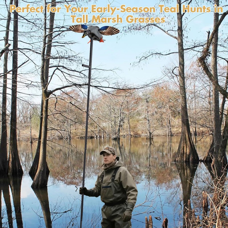 - Increase the Visibility of the decoy: The 135.4 inch height duck decoy stand hunting pole can place your prepared mallard decoy (not included) at a certain distance above the water surface, allowing ducks to see the decoy more clearly during flight, increasing the visibility of the decoy