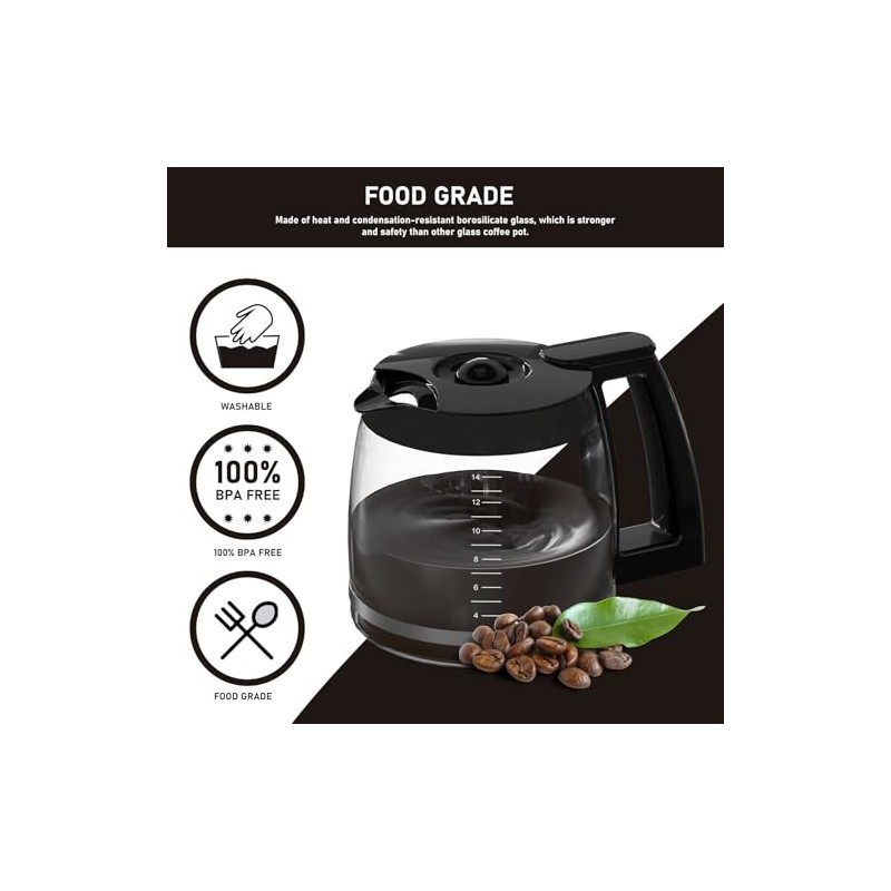 Jarra de repuesto para cafetera Cuisinart DCC-2200RC, DCC-2200, DCC-3200, DCC-3200, DCC-3200P1, DCC-3200FR, DCC-3200CPAMZ, DCC-2600, DCC-2800, DCC...