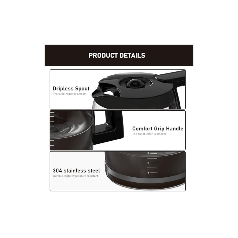 🌟 ⭐ Jarra de repuesto para cafetera Cuisinart DCC-2200RC, DCC-2200, DCC-3200, DCC-3200, DCC-3200P1, DCC-3200FR, DCC-3200CPAMZ, DCC-2600, DCC-2800, DCC-1800FR, CBC-7400 CBCBC-7000 0 unidades ⭐ 🌟