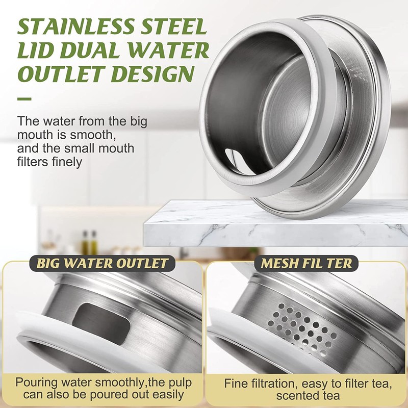 - Tapa multifuncional: la tapa tiene dos aberturas, que se pueden girar para verter agua o el otro lado para filtrar bebidas. El sello de silicona suave mantiene la tapa firmemente en la tapa para evitar fugas.