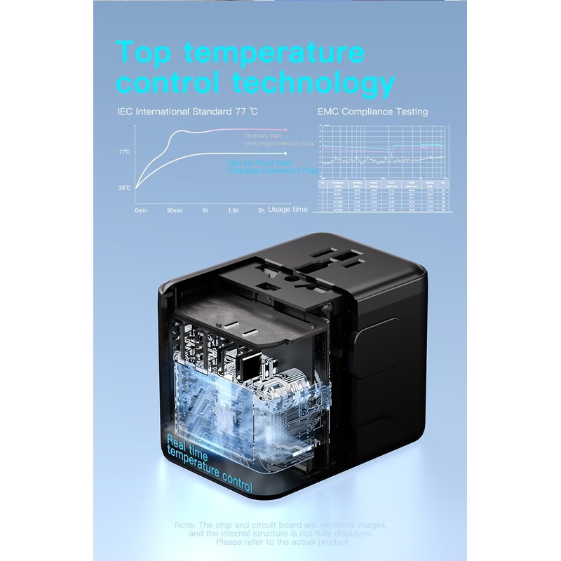- 🌍 Compact & Portable Design Weighing just 145g and measuring 7.30 × 5.4 × 5.6 cm, this adapter is small enough for your carry-on yet powerful enough for home or office use. A true essential for frequent travellers and digital nomads.