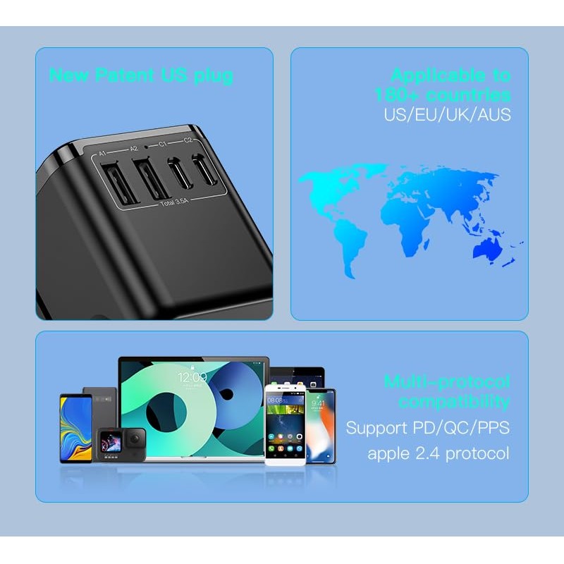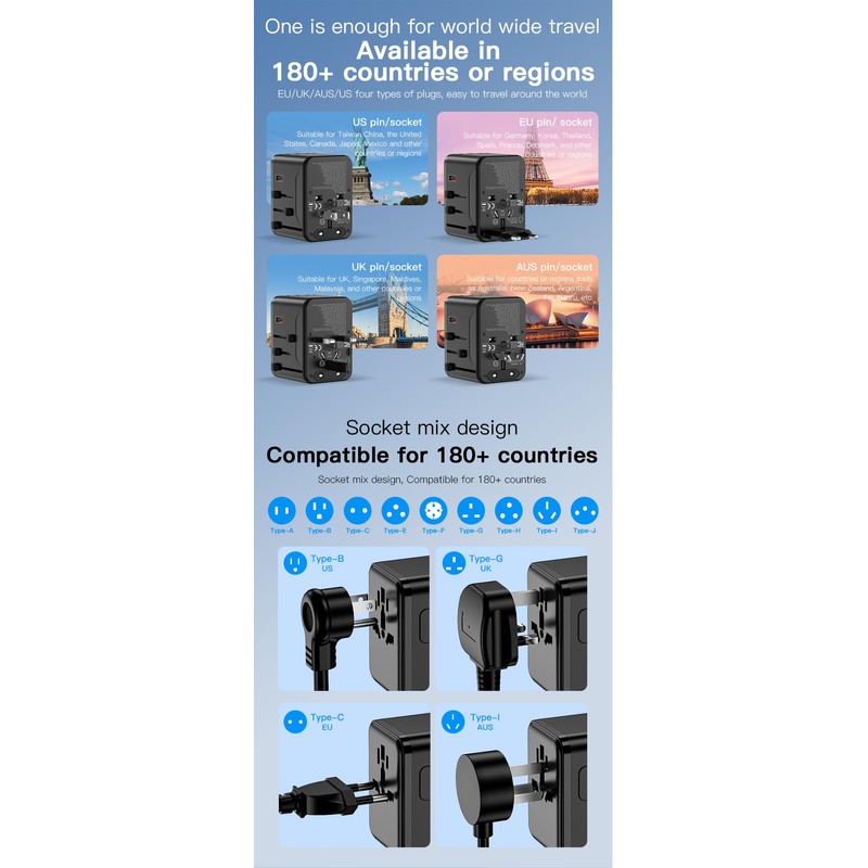 - 🔌 Year-Round Convenience – Not just for travel! This universal adapter and USB hub is perfect for home use too—charge multiple devices at once, anytime. A must-have for both trips and everyday charging needs.