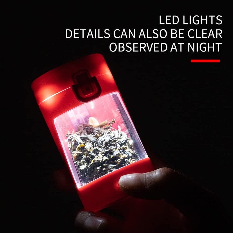 Jars Light-Up LED Transparent Glass Air Tight Storage Jars with Herb Grinder Magnifying Viewing Jar Portable Mini Lightweight for Easy Storage and Carrying (White)