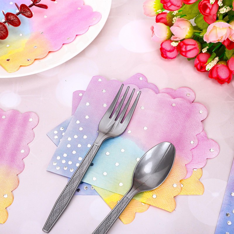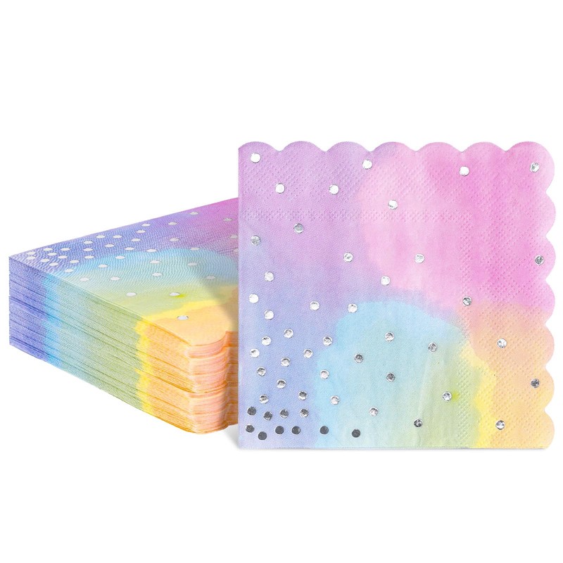 - PASTEL RAINBOW NAPKIN: The paper napkins feature pastel colors and silver dots with scalloped edges, colorful and bright, perfect for party table decor to create festive and joyful atmosphere.