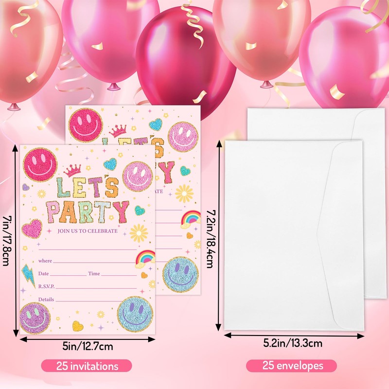 - PACKAGE INCLUDES: You will get 25 pcs smile face party invitations and 25 pcs envelopes. Each invitation has space to add your party details