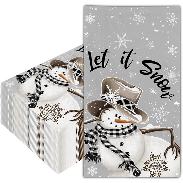 JarThenaAMCS 50Pcs Christmas Guest Napkins Disposable Grey Snowman Snowflake Paper Napkins Winter Dinner Hand Napkins for Xmas Party Tableware Supplies