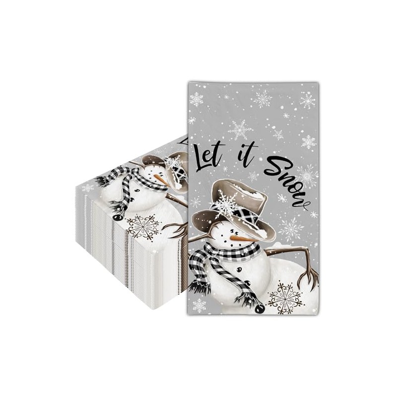 50pcs paper guest napkins, patterned with winter snowman and snowflake, beautiful and practical, suitable for many occasions.