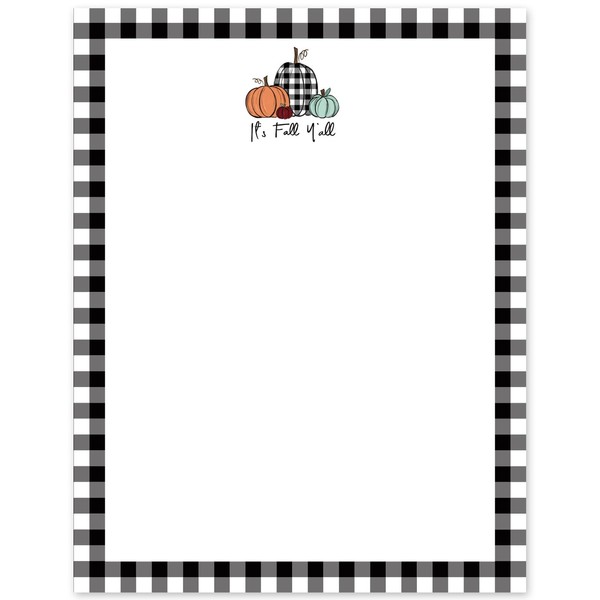 JarThenaAMCS 80 Sheets Fall Stationery Paper Autumn Pumpkin Decorative Writing Paper Buffalo Plaid Border Letterhead for Party Invitations Office School Printing, 8.5 x 11 In