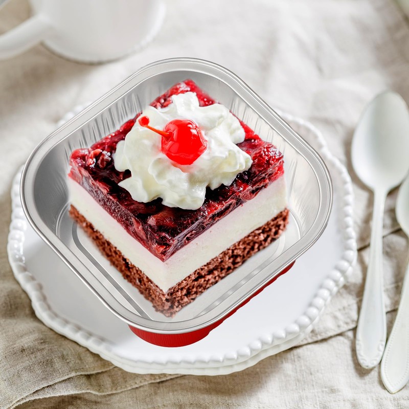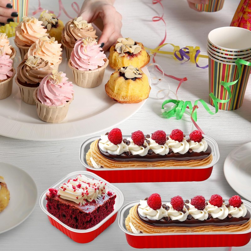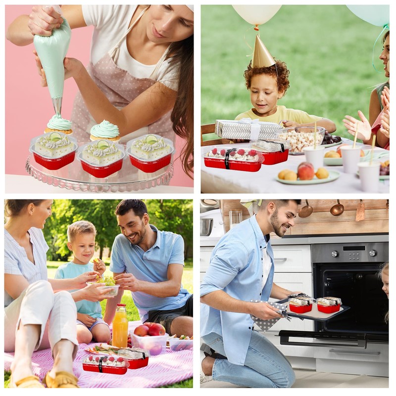 • SAFE & QUALITY: Made of premium aluminum foil and plastic material, our baking tins are safe and reliable for dessert serving, light weight and easy to carry, disposable for time saving, they can be put into the oven and microwave, convenient to use