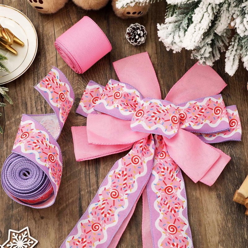 - EXQUISITE DESIGN: Our ribbon rolls are patterned with candy canes or colored in solid pink color, sweets and delicate, which can meet your holiday decoration needs