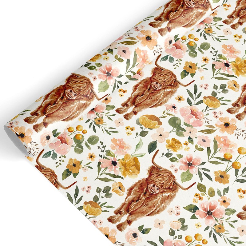 - RUSTIC DESIGN: Our wrapping paper is designed with watercolor highland cow and flowers, exquisite and elegant, wonderful supplies for gift wrapping and suitable for many occasions