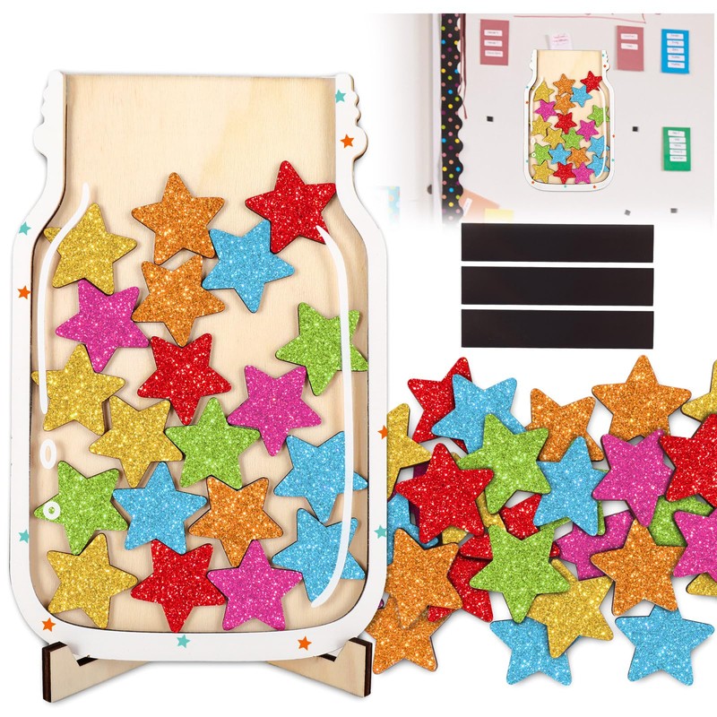 - EASY TO USE: The reward jar can be attached to the blackboard, refrigerator or any magnetic surface you want, or placed on the desktop. You can set some specific actions for students to get stars, or when you think students have done something particularly good, you can give stars rewards at any time, helping students build healthy daily habits.