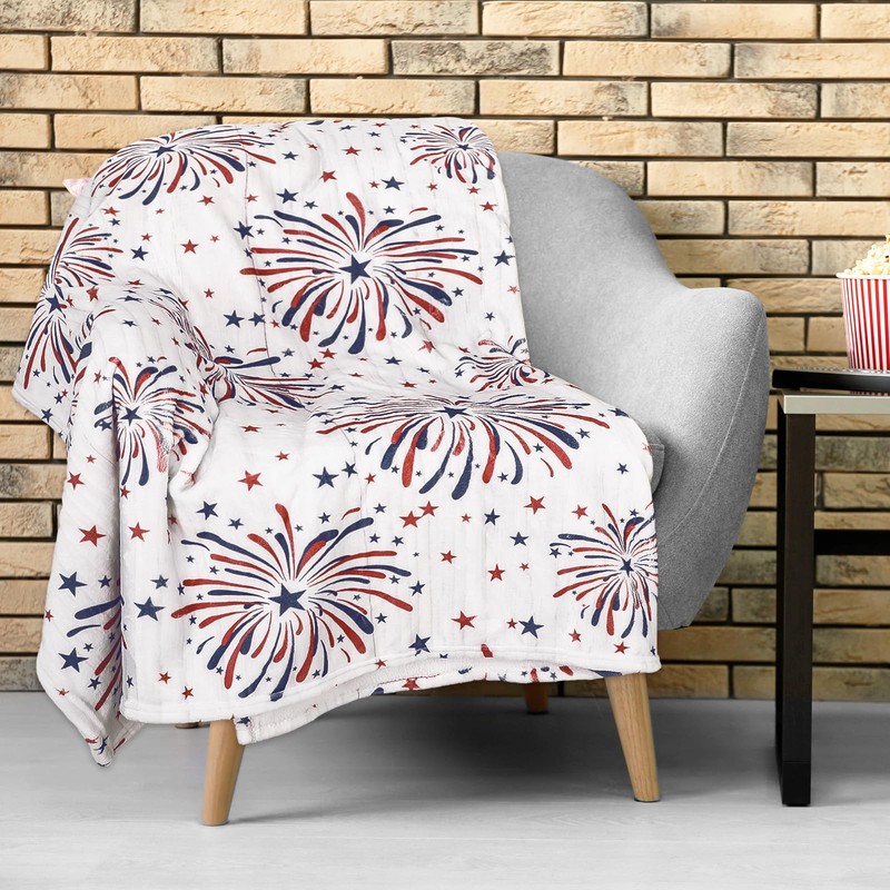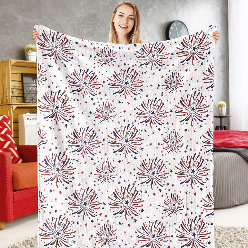 - PATRIOTIC DESIGN: Our fuzzy blanket featuring patriotic theme, patterned with red blue fireworks and stars, delicate and festive, suitable for many occasions