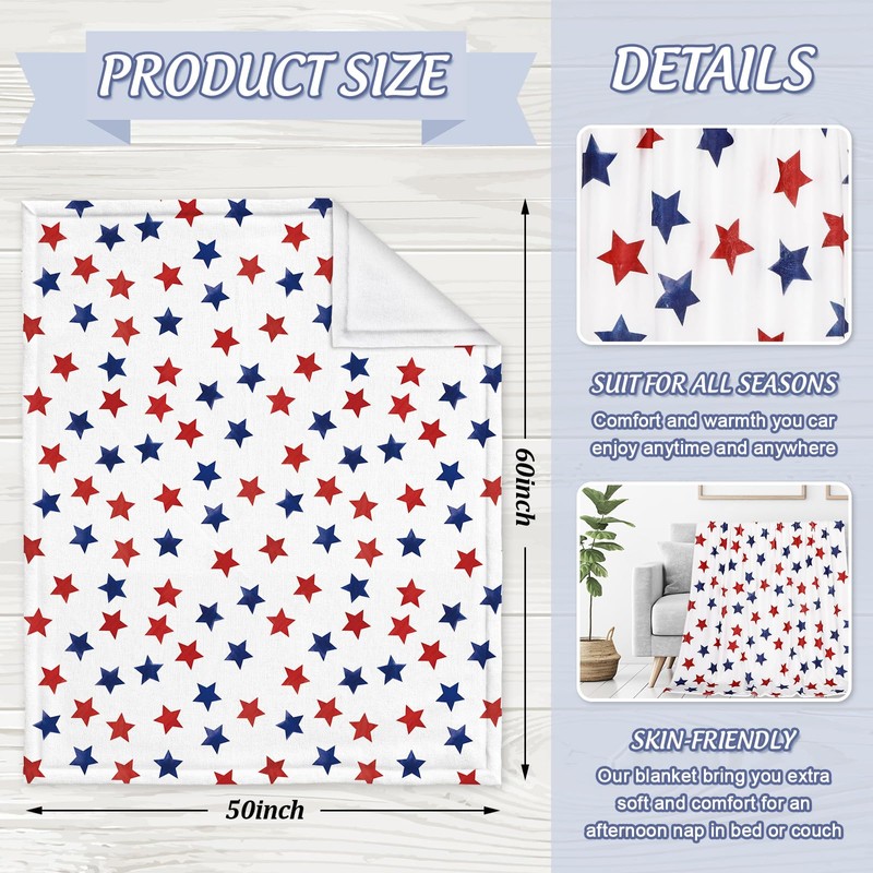 - PATRIOTIC DESIGN: Our fuzzy blanket featuring patriotic theme, patterned with red and blue stars, delicate and festive, suitable for many occasions