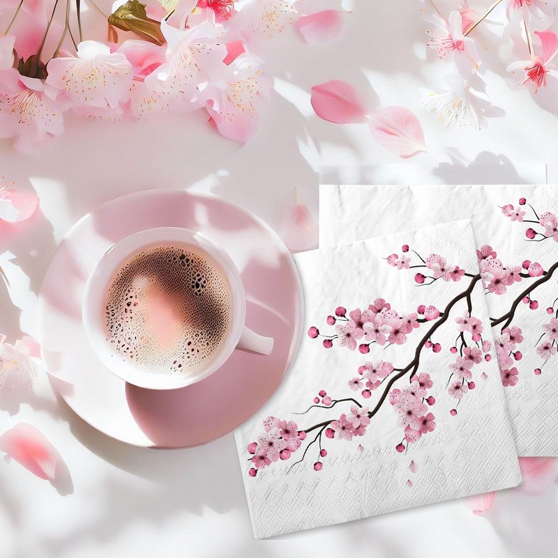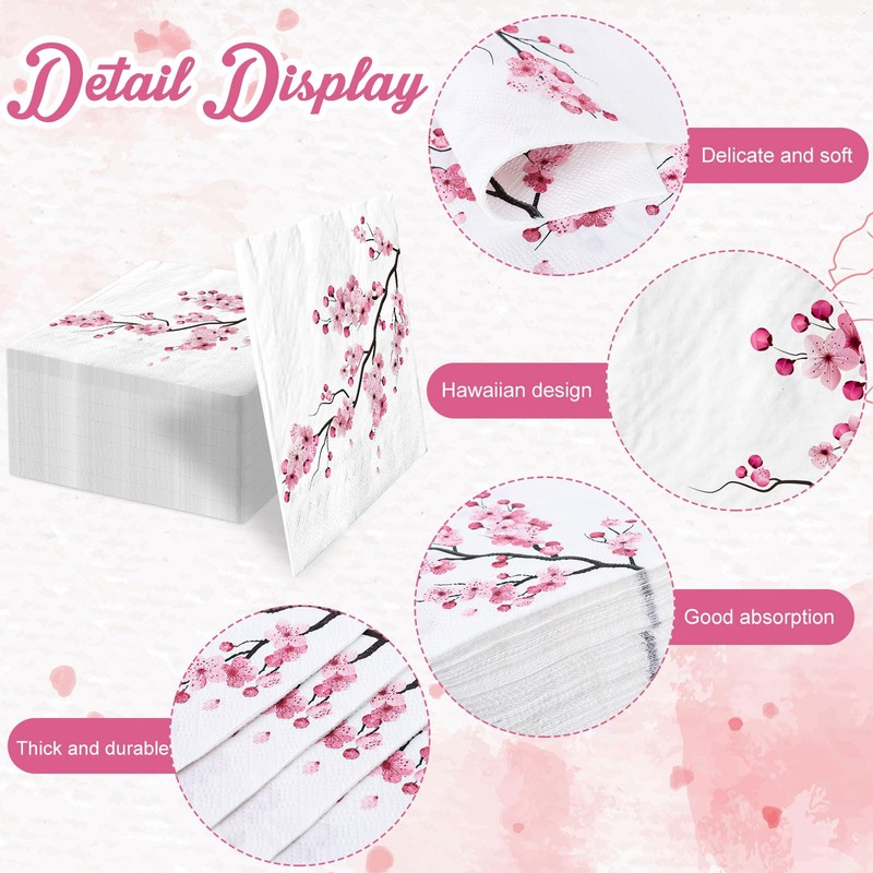 JarThenaAMCS - Servilleta de papel floral con flores de cerezo rosa, servilleta desechable de verano, flores, almuerzo, cena, servilleta de mano para boda, cumpleaños, baby shower suministros para