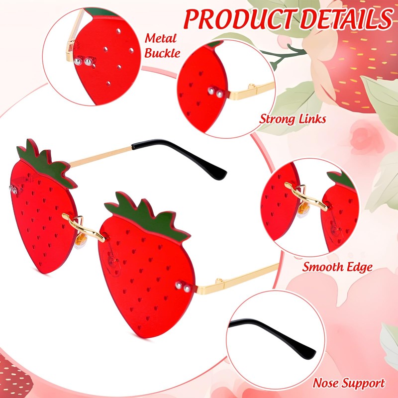 - CUTE GIFT: Our strawberry shape rimless sunglasses provide you with both fashion and protection, will be ideal gifts for your friends, family members or yourself in various daily dress-up and holiday parties.