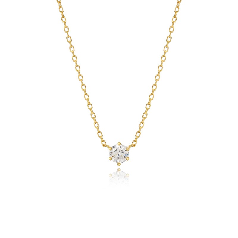 JaruJaru Dainty Vermeil Ultra Thin Gold Chain Necklace, 14K Gold Plated on Sterling Silver, White Cubic Zirconia Crystal, Delicate Dewdrop Stone, 38cm/41cm/45cm Adjustalbe Length