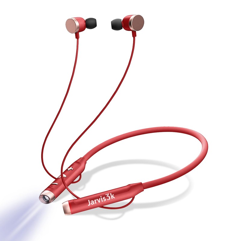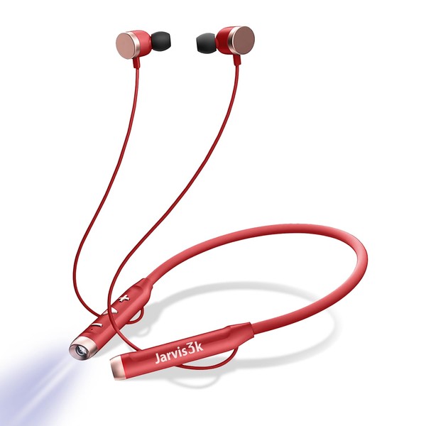 Jarvis3k Flashlight Wireless Headphone Neckband Reading Light with Bluetooth Earbuds (Red)