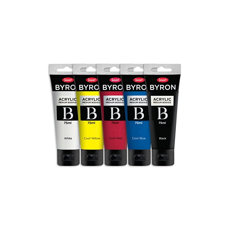 Jasart Byron Acrylic Paint, 75 ml, Primary Cool, (5 Pieces Set)