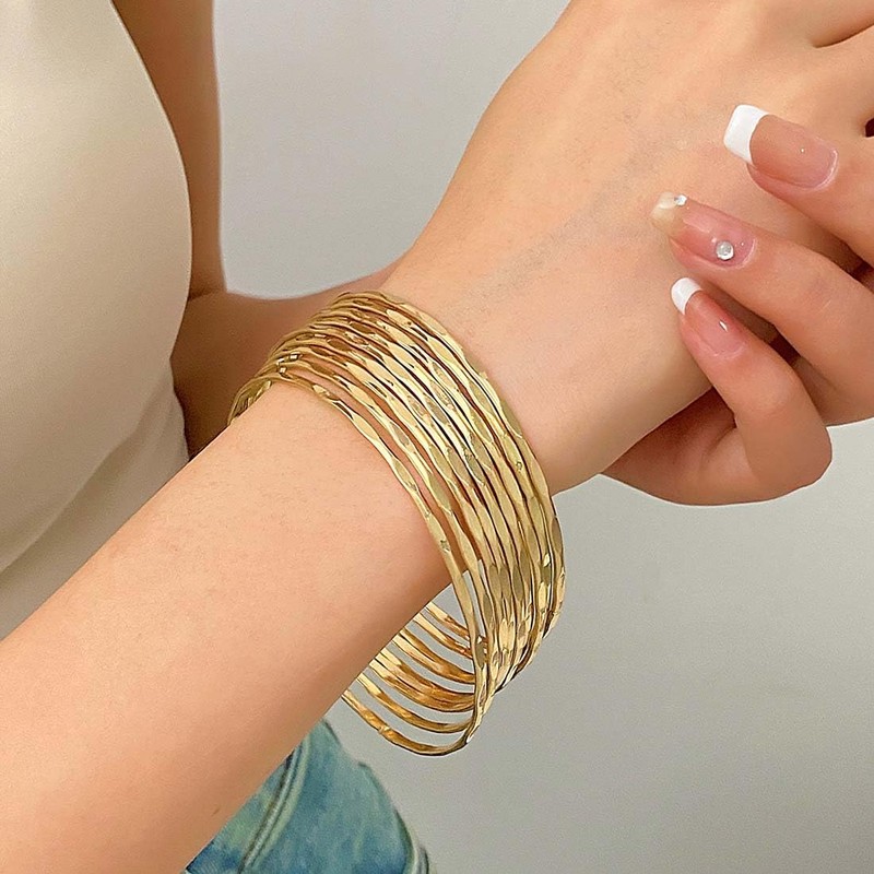 - Gold bangle collection is suitable for most people to wear,no need to worry about size. It is your indispensable collocation item.