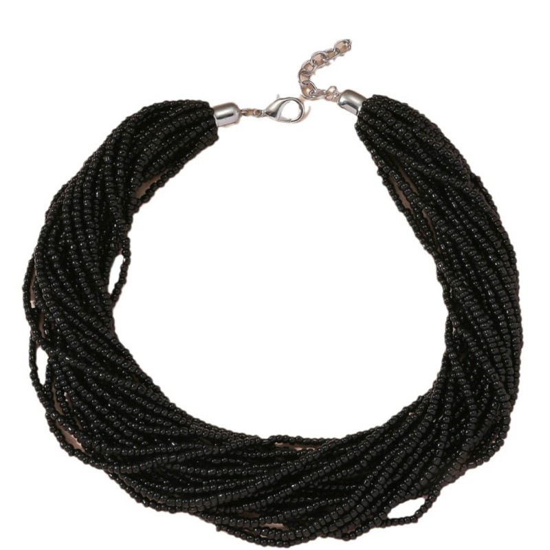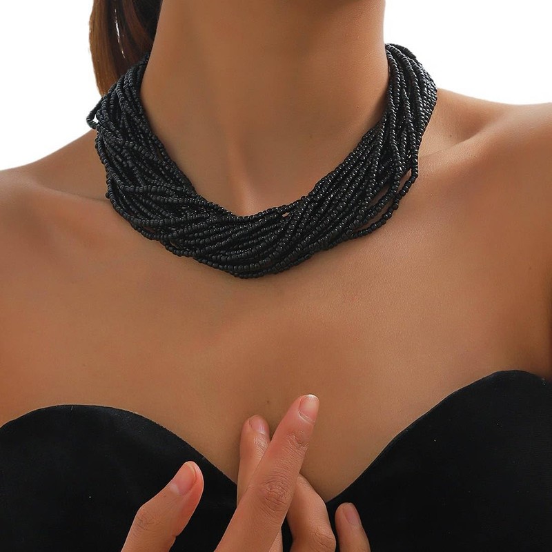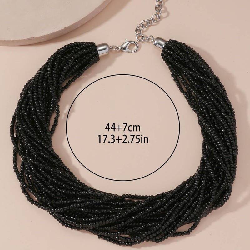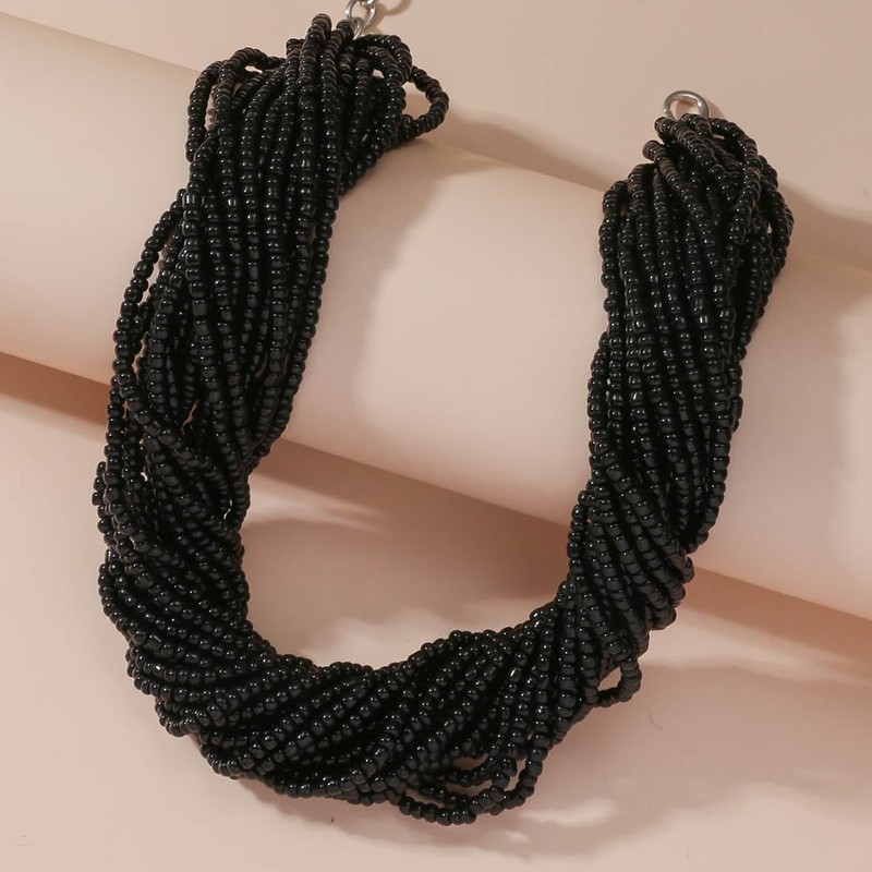 Jascatin Bohemia Multi Layer Exaggerated Necklace Handmade Beads Chain Boho Beaded Choker Necklace for Women (Black)