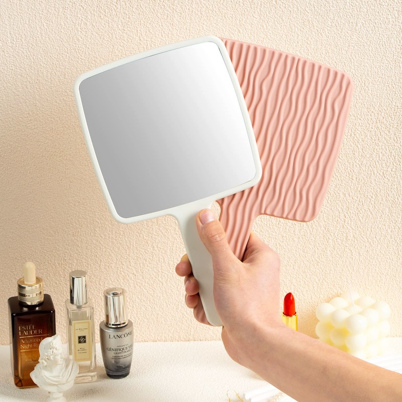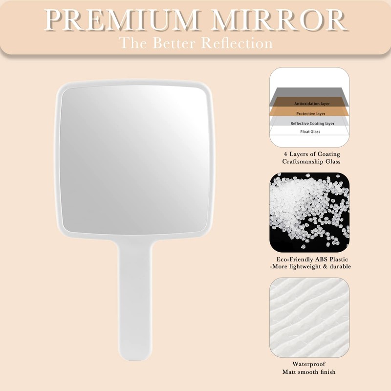 Jasefa Hand Mirror, Handheld Mirror with Handle for Makeup, Portable Cute Hand held Mirror for Shaving, Travel Men & Women(White)