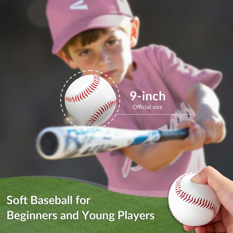 • Belt and Baseball:The baseball belt is made from a combination of faux leather and elastic materials,with an adjustable alloy buckle for a secure,comfortable fit around your child's waist.The 9-inch soft baseball is crafted from soft synthetic leather with a rubber insert to reduce impact,making it soft,and great for beginners and young players.