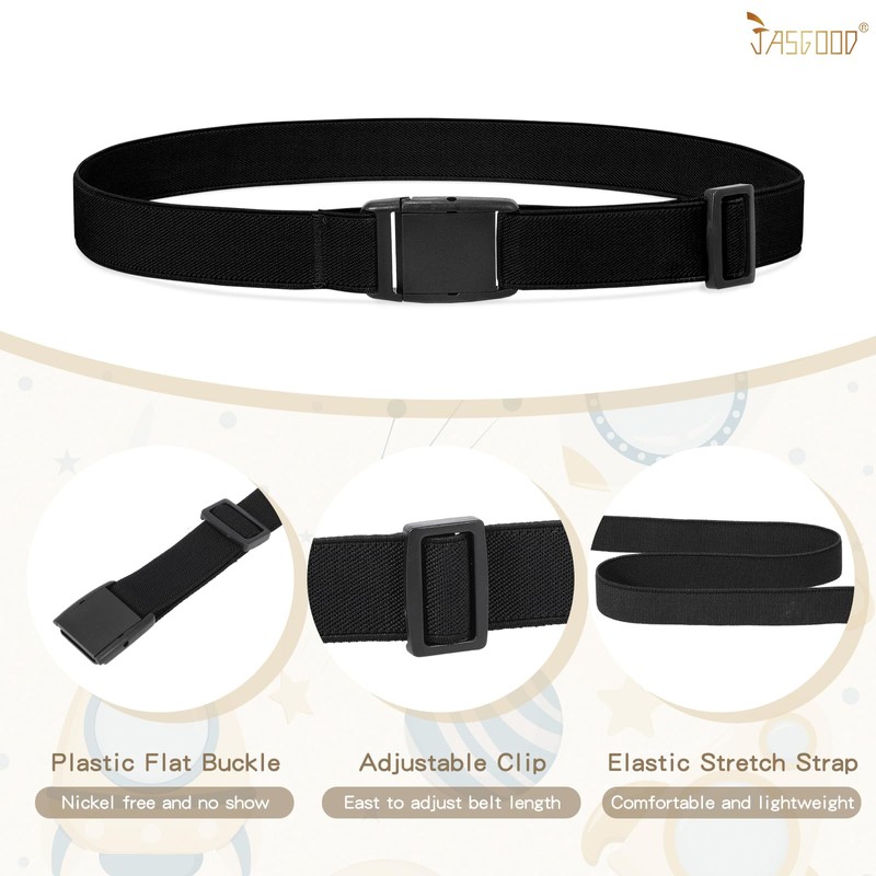 - Plastic Buckle---This kids boys elastic belt made with metal free plastic buckle which is airport friendly,and it’s perfect for children who have metal allergy to wear. The flat plastic buckle and adjuster is easy to unclasp and move by themselves.