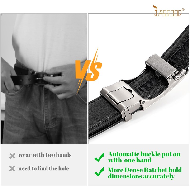 • Adjustable Size:JasGood offer three sizes to choose from, you can choose the right size that suits you. And our automatic buckle design allow you to easily trim the belt to your ideal length, ensuring a comfortable fit every wear. No more worries about ratchet men belts being too long or too short.