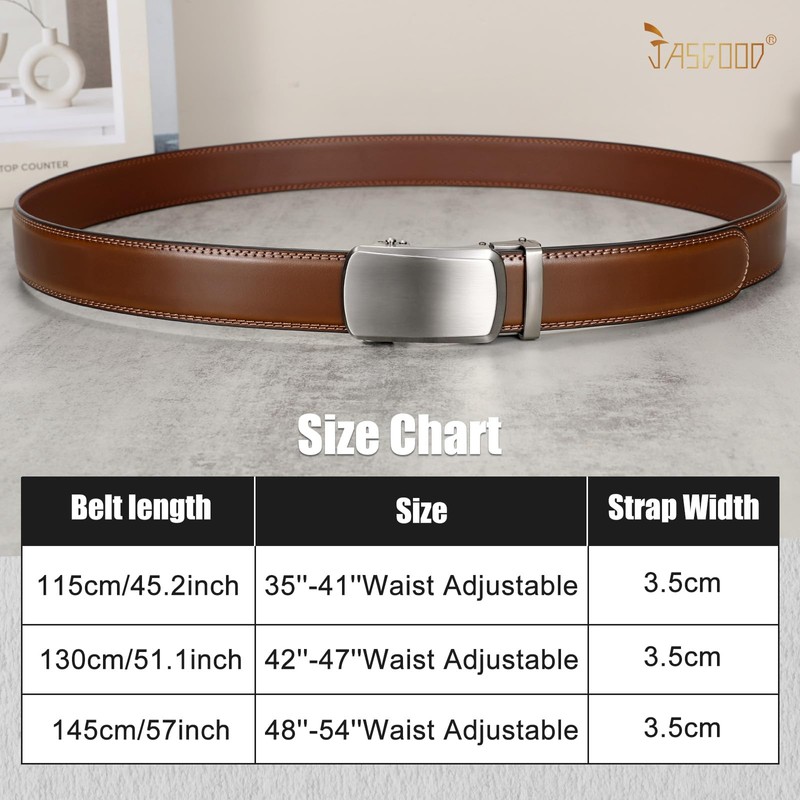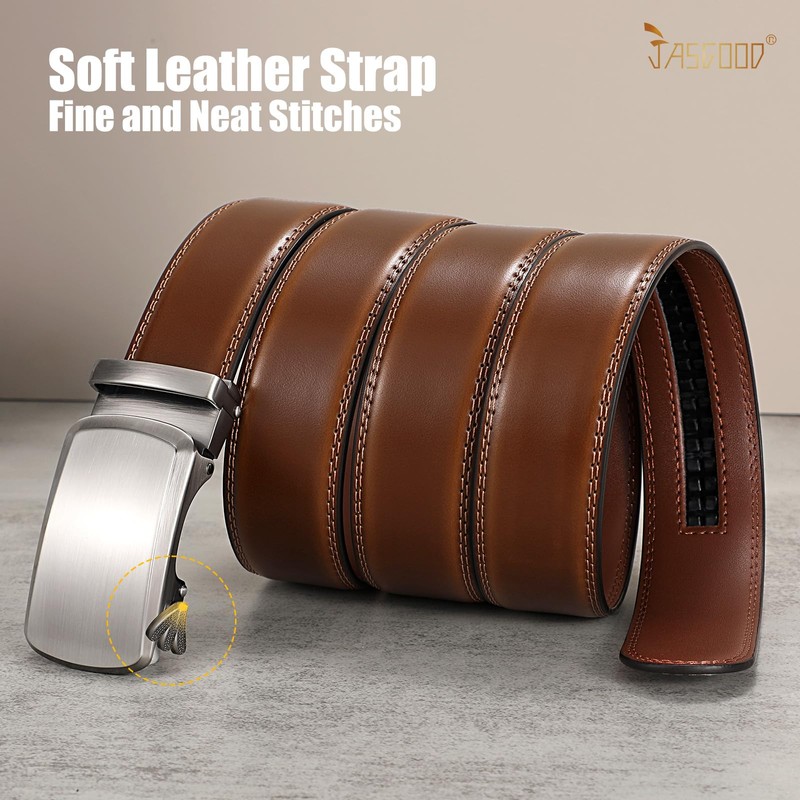 JasGood Men Ratchet Leather Belt with Automatic Slide Buckle for Men Suits